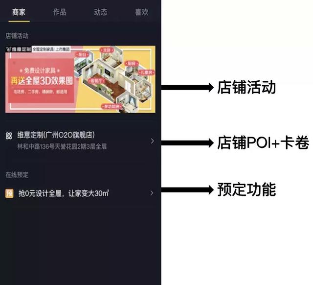 2¡¢µêÆÌPOI+¿¨È¯¡£³ýÁËÔ¤¶¨£¬É̼ÒÒ³ÃæÖ§³Ö¶àÑùµÄÓªÏúÐÅÏ¢ÍÆ¹ã£¬POIÕýÊÇÆäÖеĹؼü¹¦ÄÜÖ®Ò»¡£ÔÚÉ̼ÒÈÏÁìPOIµØÖ·ºó¿ÉÒÔ¹ØÁªÏßϵêÆÌ£¬Óû§¹Û¿´´øÓÐPOI±êÇ©µÄ¶ÌÊÓÆµÊ±£¬¿Éͨ¹ýµã»÷POI±êÇ©µÄ·½Ê½Ö±½ÓÌø×ªµ½ÉÌ¼ÒÆóÒµºÅÖ÷Ò³£¬¿ìËÙÒýÁ÷¡£