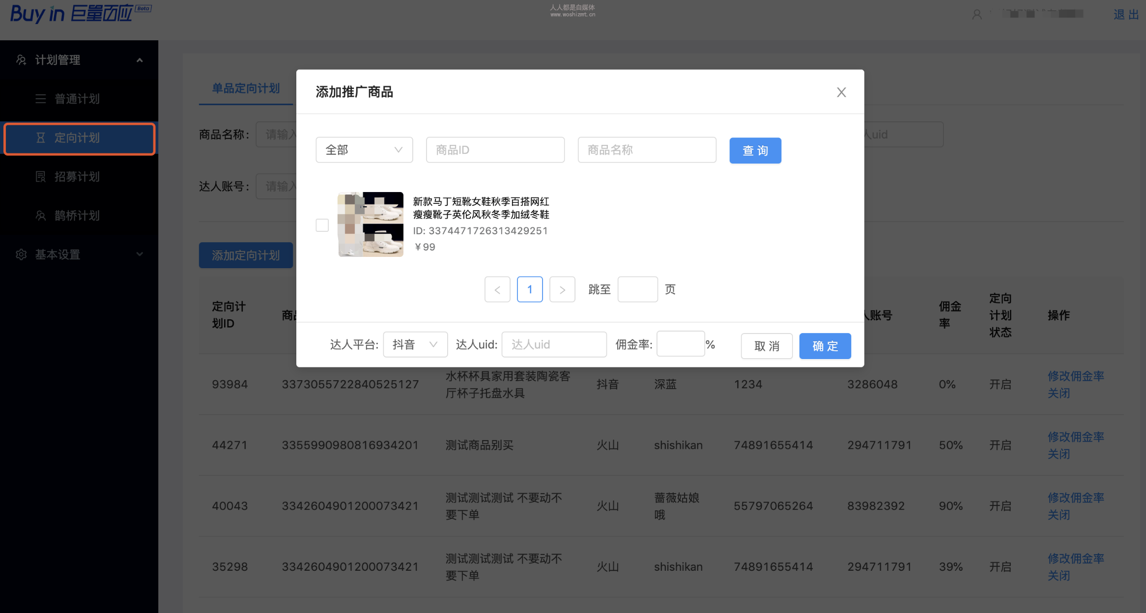 商家为普通计划中的商品绑定指定达人(通过uid绑定),并为其单独设置定向佣金率。