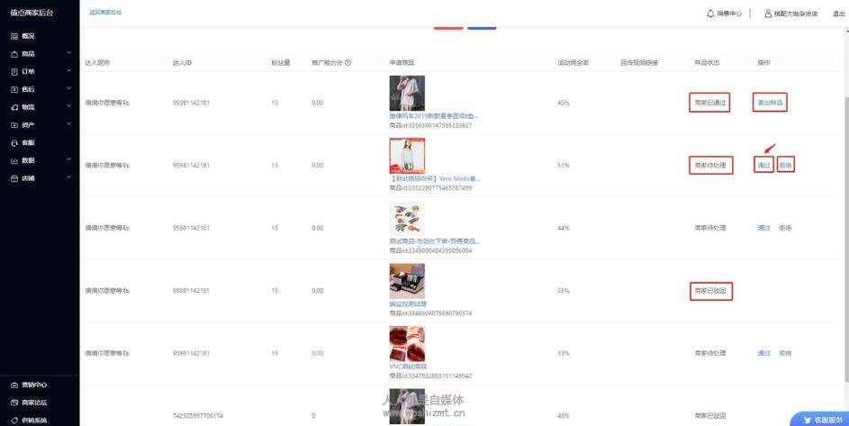4.商家可以根据达人情况选择性通过达人的申样请求