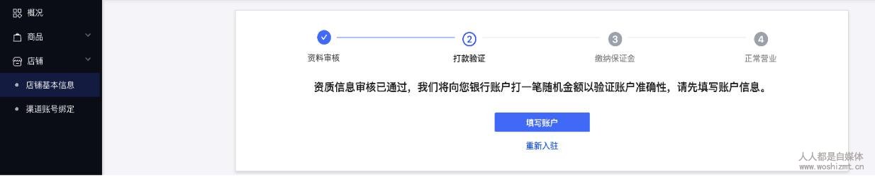 提交完成,点击进入店铺,确认进入资料审核。