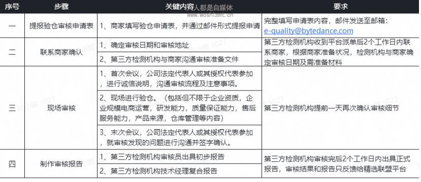 商家的线下实地验仓将通过企业资质、企业规模、电商运营、研发能力、质量保证能力、售后服务能力、产品检验、仓库管理等环节进行综合打分评定,平台将根据各个部分实际得分情况及权重综合评定最终得分,确定审核是否通过。审核合格者且满足精选联盟平台其他入驻条件的,将获得精选联盟平台准入资格,并享受精选联盟平台的更多权益;审核不合格者即失去精选联盟平台准入资格,不再享受精选联盟平台更多权益倾斜。审核不合格者经过整改后有且仅有一次复验资格,复验合格者且满足其他入驻条件的将予以准入。 所有线下实地验仓审核产生的费用由商家自主承担。