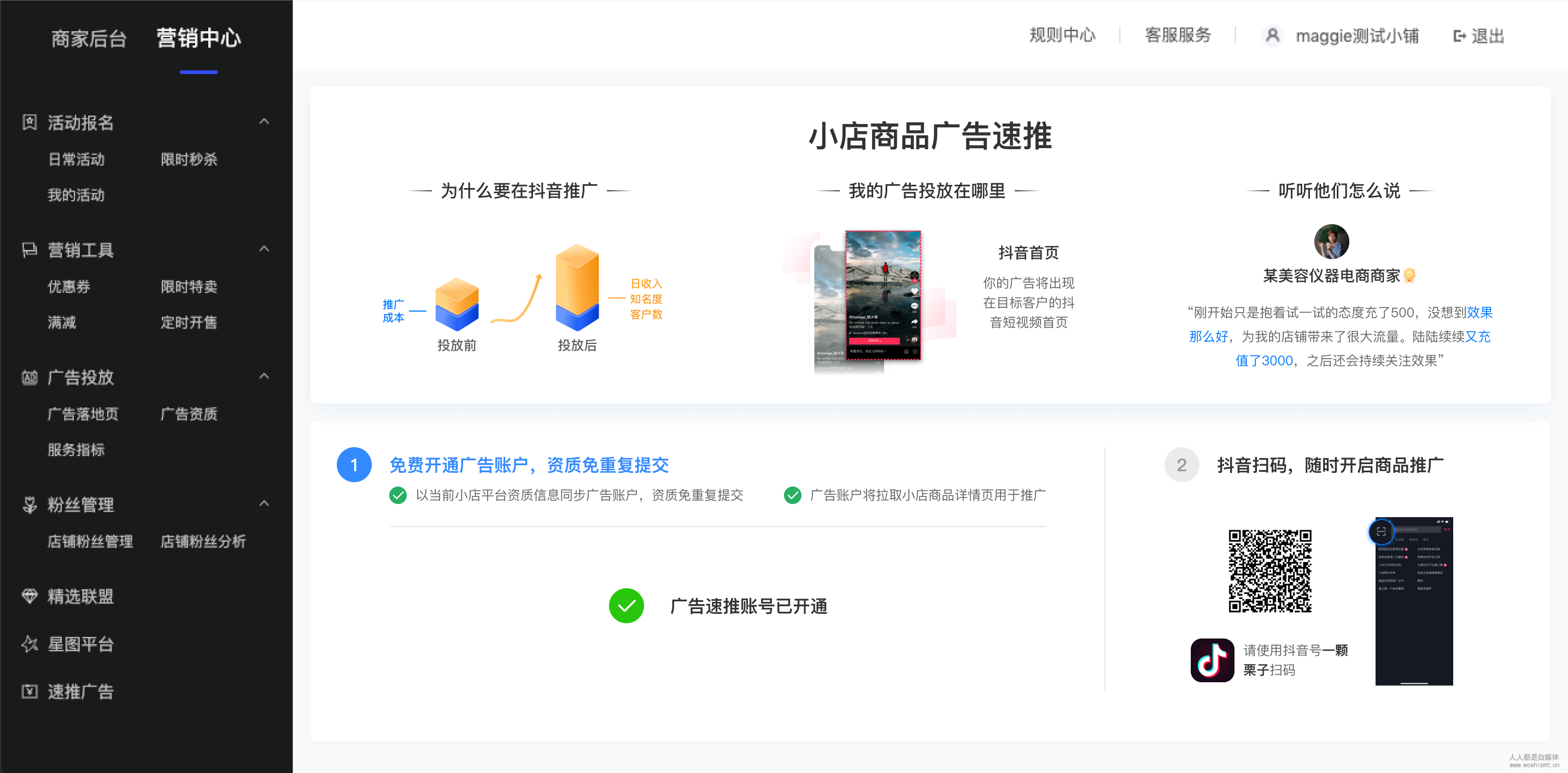 (1)小店入口:已开通速推账号
