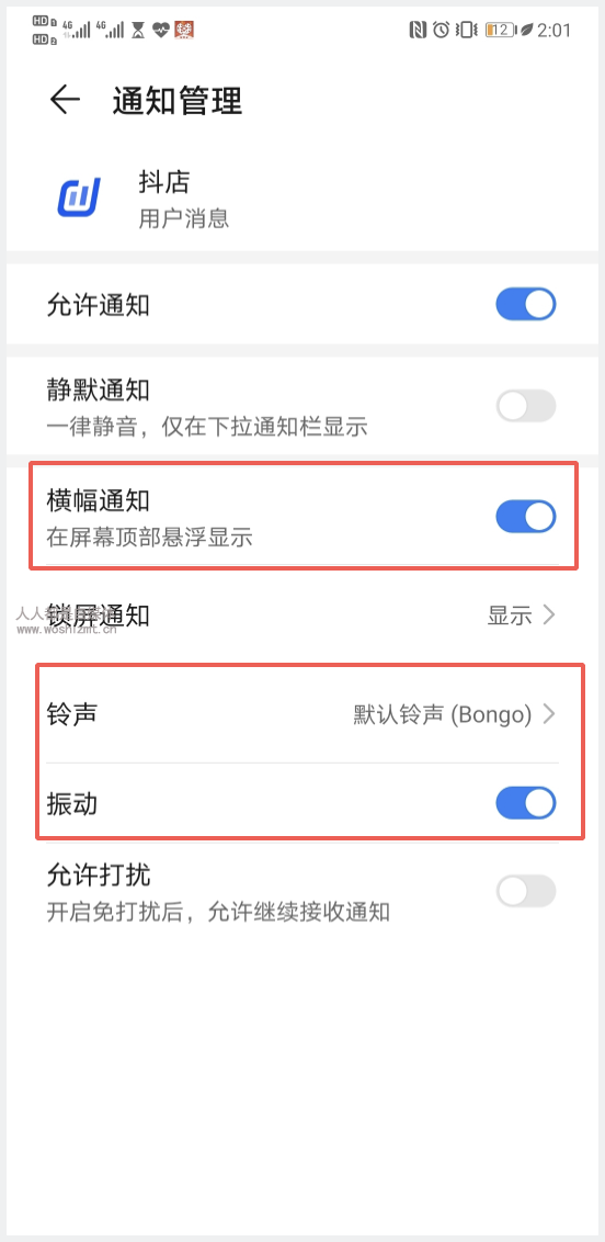 - 检查横栏消息开关和声音:点击设置-》通知设置-》用户消息提醒,跳转手机设置页面,检查横栏是否开启,声音和震动是否开启;