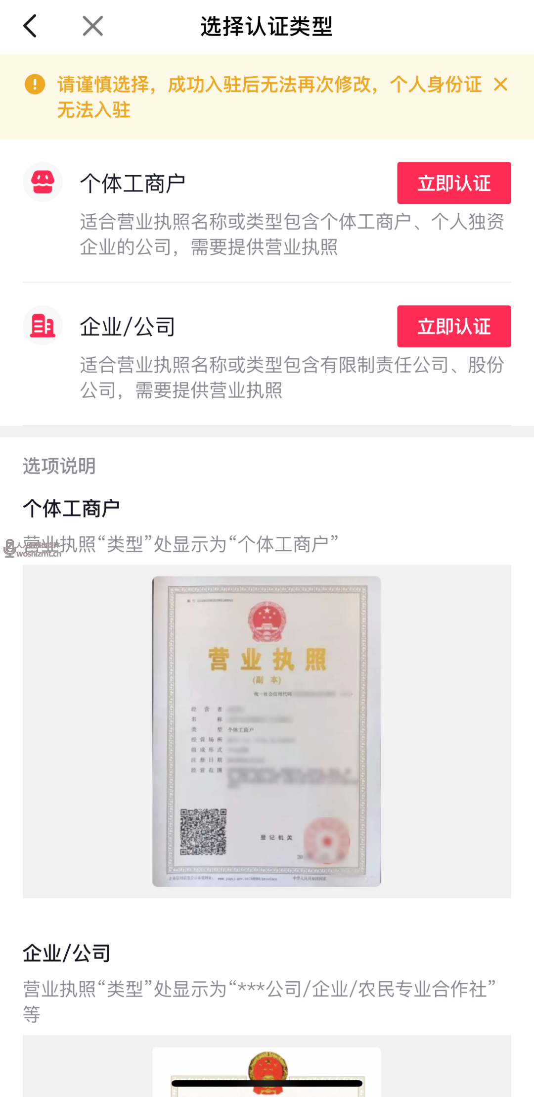 主体类型一旦选择,认证后无法修改,会影响正常经营。请务必根据营业执照类型选择符合要求的主体类型。