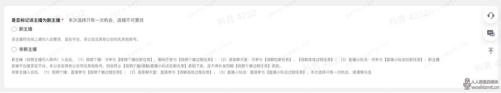 ◦如果选择“非新主播”,则入会后直接参与视频个播过程任务,不参与视频个播拉新任务