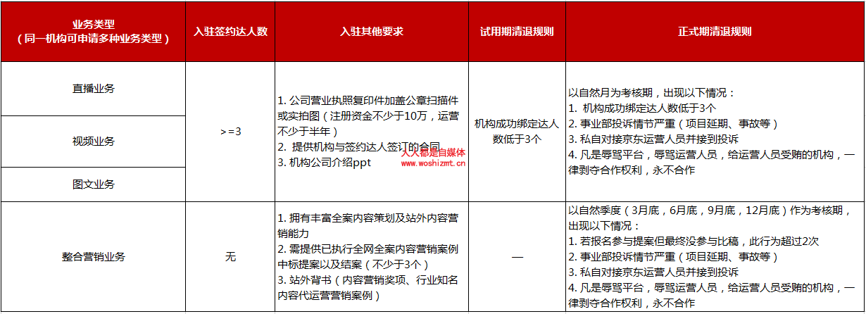 拥有优质达人资源、市场策划及宣传能力的的经纪公司、传媒公司、广告公司等,有能力为京东达人平台持续输送明星艺人、自媒体、红人、网络主播、时尚博主、专业领域意见领袖。