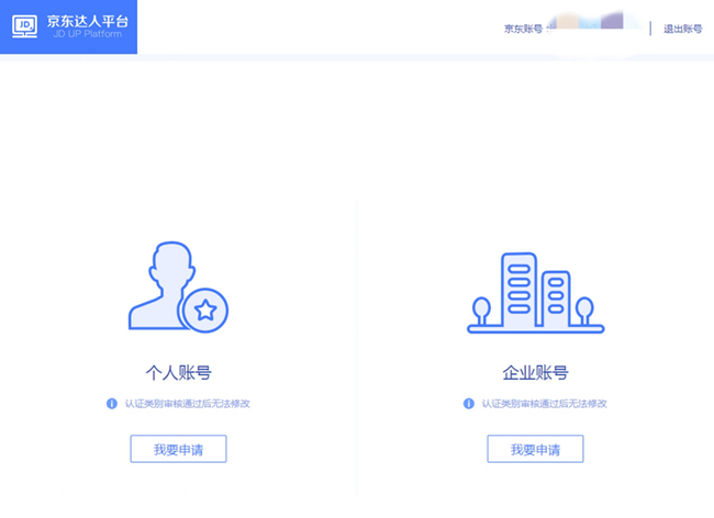 l 个人账号:适用于普通达人,录入身份证认证等信息。