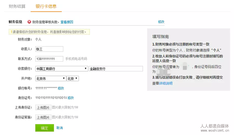 如果账户内显示付款失败,请您检查您的银行卡信息是否填写正确,并及时更正,相应的款项会在次月继续为您支付。