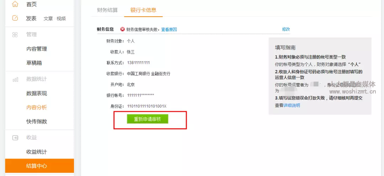 当您的收益开通后,即可填写银行卡信息,界面如下: