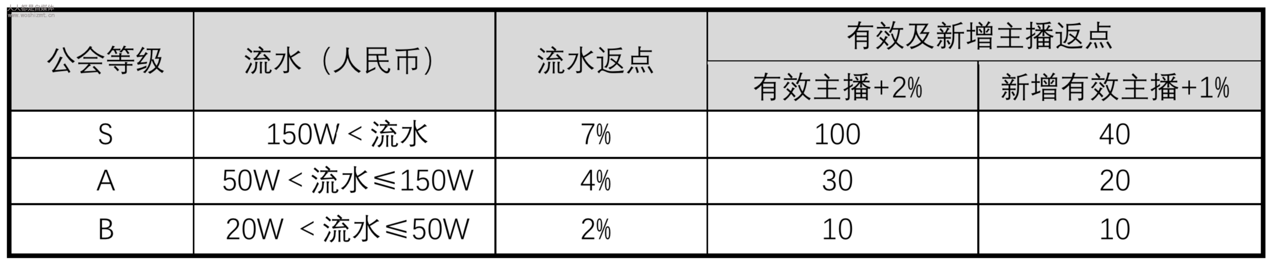 3)新增有效主播:加入公会时间为结算当月且在平台内为首次开播,月有效天≥4 天,且月流水≥200 人民币;