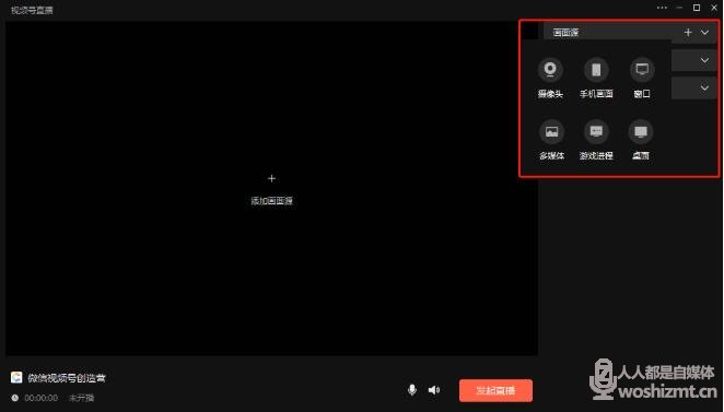 完成声音和内容显示设置后,即可点击右侧功能栏“画面源”的“+”,设置直播画面源。