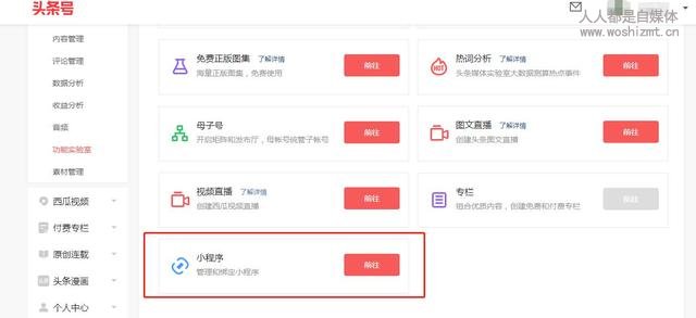 - 头条号运营者可通过头条号后台「今日头条-功能实验室-小程序」进入小程序管理页;