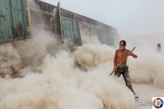 主标:民工兄弟在粉尘中作业,瞬间面目全非,这些劳动场景让人震撼