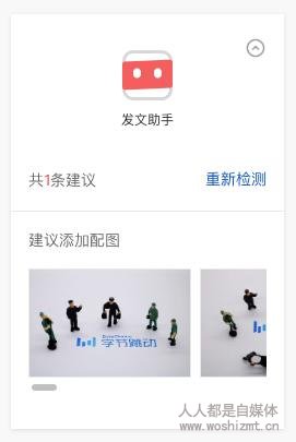 在发「文章」页面右侧,新增「发文助手」功能。在创作者创作过程中,发文助手将针对内容进行实时检测分析,发现问题后,即时向作者提出反馈建议。