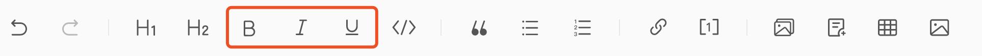 编辑器中对字体进行加粗、斜体、下弧线处理;主要用于补充说明或额外解释。