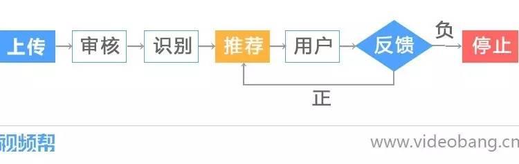 短视频上传并审核后进入推荐系统,系统识别短视频内容的分类,标题等标签信息后试探性推荐给首批目标用户,根据用户反馈进行多批次推荐或停止推荐。