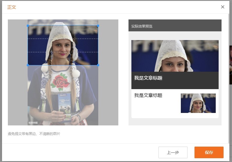 一、写文章时,您可从正文中选择图片进行封面设置。