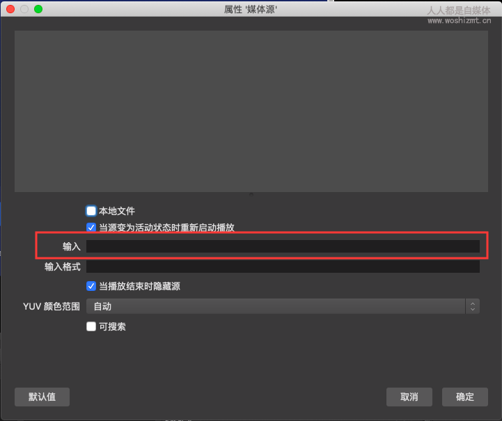 「媒体源」: 用于展示本地文件或者媒体源流地址。可根据自己需要勾选,如果展示媒体源流地址,不勾选本地文件,将源流地址填入【输入】一栏