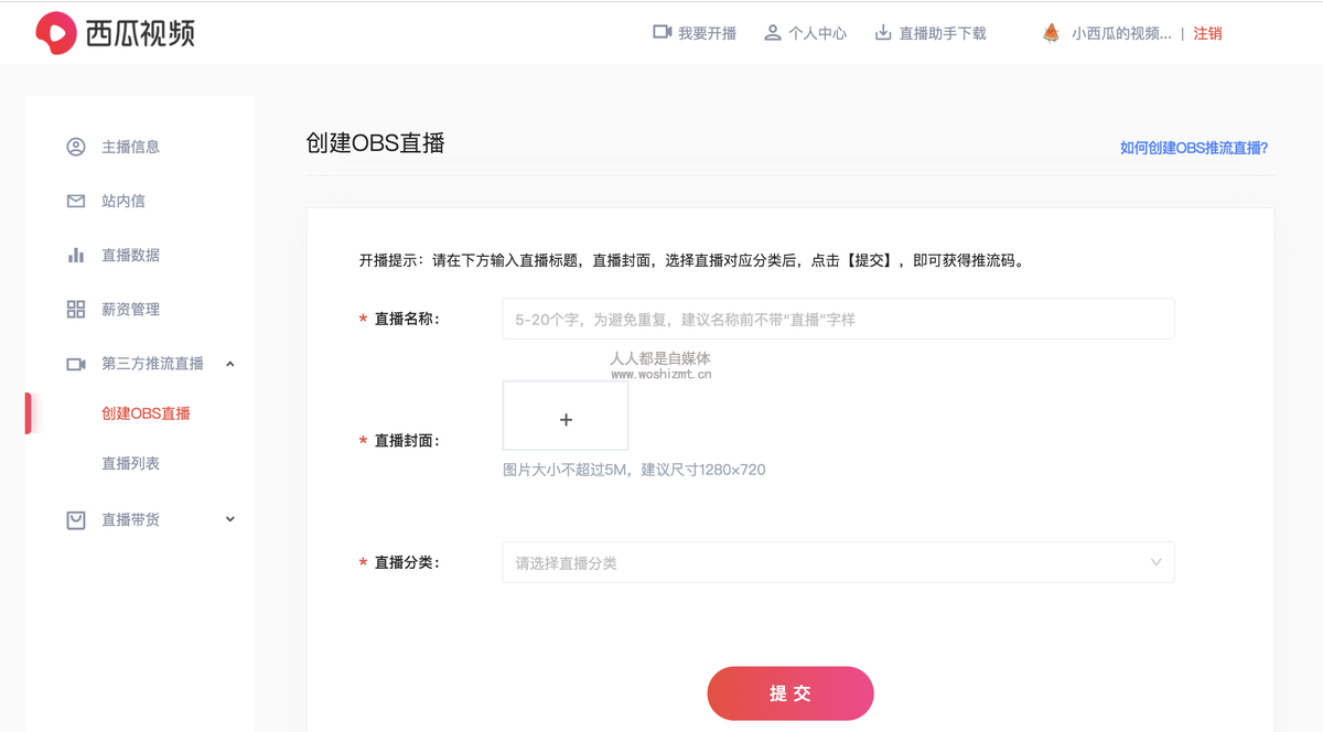 在obs直播配置https://live.ixigua.com/anchor-center/common/settings/create/0