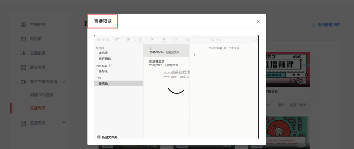 另外,主播可在西瓜直播平台【第三方推流直播】下的【直播列表】中查看历史直播记录/直播流地址和复制当前直播间链接进行【直播间分享】
