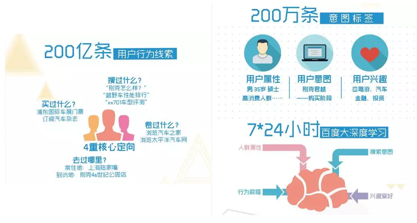 想知道用户想要什么?百度深度学习能捕捉用户的检索兴趣,推测用户意图,200亿条用户行为线索,200万种用户标签,还怕找不到你想要的TA?