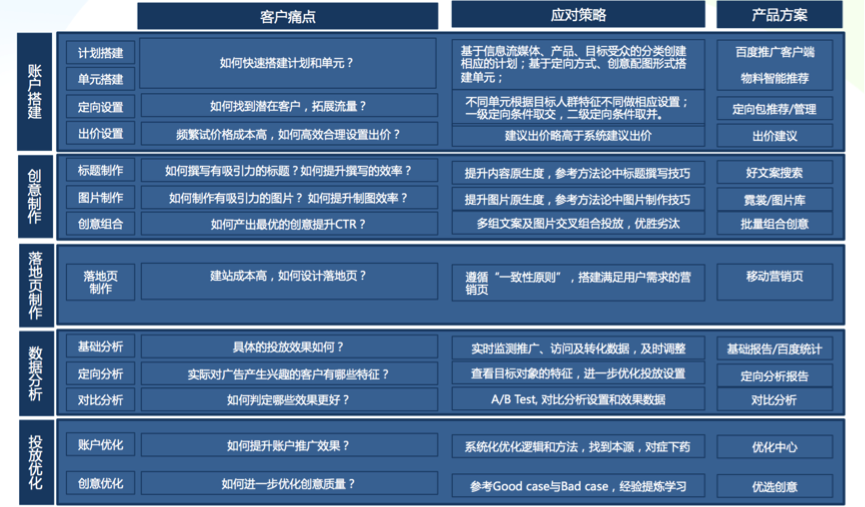 一个完整的百度信息流投放全流程,涵盖如下五步,账户搭建—创意制作—落地页制作—数据分析—投放优化。