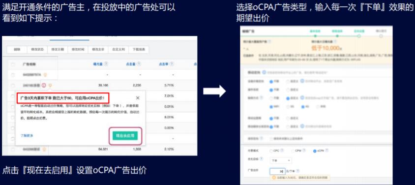 注意:广告主投放的广告必须在3天内订单数大于50个, 才可以启用oCPA投放!