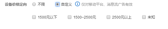 设备价格定向是指如果你推广的是一款性价比比较高的电子产品,可以选择平时用手机在1500-2000的价位的人群去投放,因为这类人群对电子设备不追求高端和高价格,更容易成为你的受众。