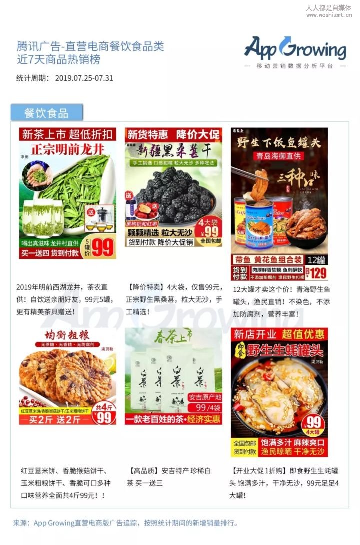 腾讯广告服饰鞋包类、餐饮食品类以及日用百货类的热销商品如下。