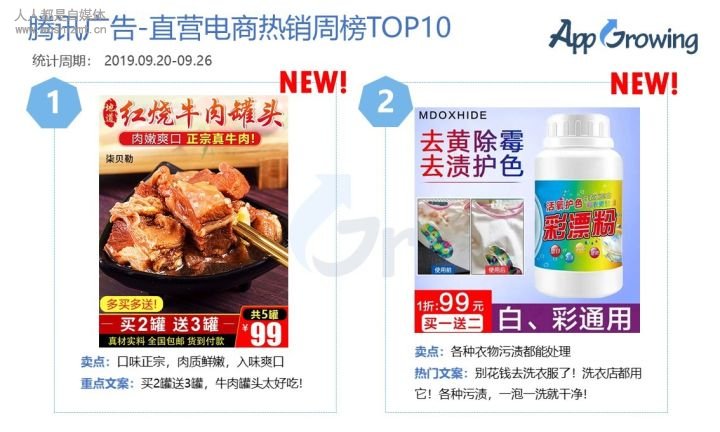说明:以下排行榜以 App Growing直营电商版 所追踪的不同商品在所对应的平台在9月20日-9月26日期间新增的销量作为排名的依据。