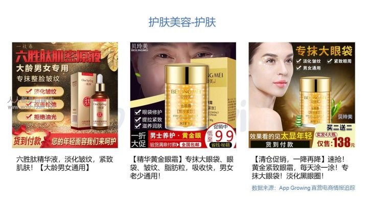 腾讯广告服饰鞋包类、护肤美容类以及日用百货类的热销商品如下。