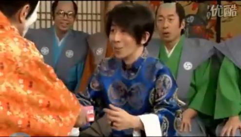 可以看到十几个美姬跪坐在那,日本天皇大马金刀的坐在那接受刘谦虔诚的跪拜。