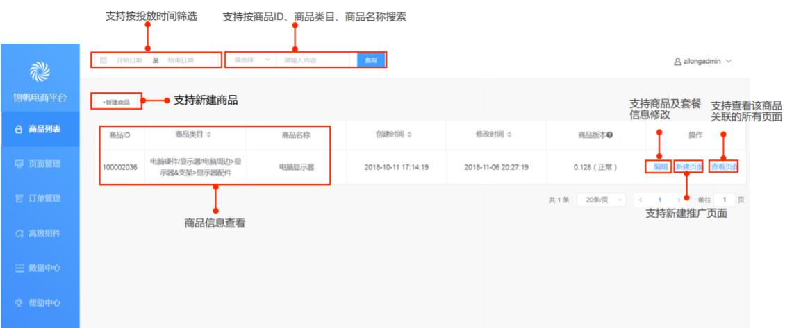 商品列表主要进行商品管理:提供商品的新建,筛选查询,编辑等功能