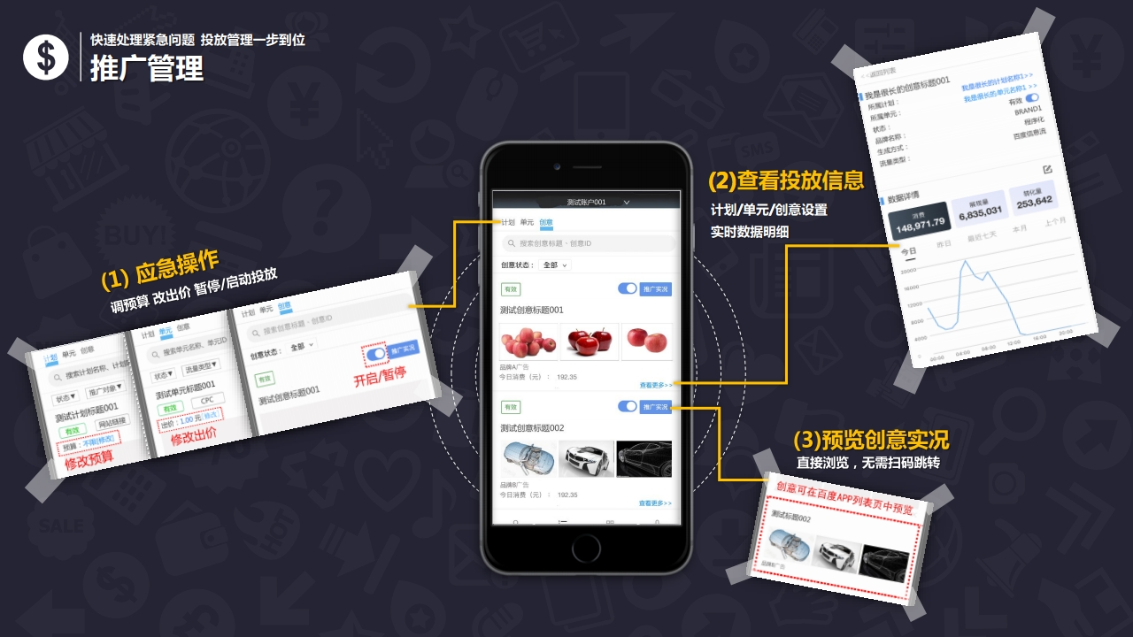 百度信息流推广官方小程序,为广告主、代理商、一线优化师提供了高效管理广告的工具。无需打开电脑,也能快速管理投放,随时随地查看数据。实现数据洞察快人一步,广告投放随时掌控。